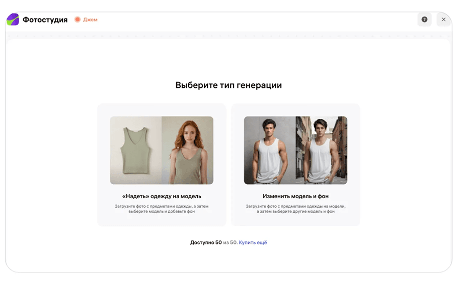 В рамках пробного тарифа доступны: ИИ-фотосессия (обычная модель) стоит 3 кредита, ИИ-фотосессия (PRO модель) стоит 6 кредитов. Таким образом, используя 57 кредитов на инструмент ИИ-фотосессия в рамках пробного, бесплатного тарифа можно сгенерировать 19 фото (обычная модель) и 9 фото (PRO модель). Бюджет 10 000 рублей остается.