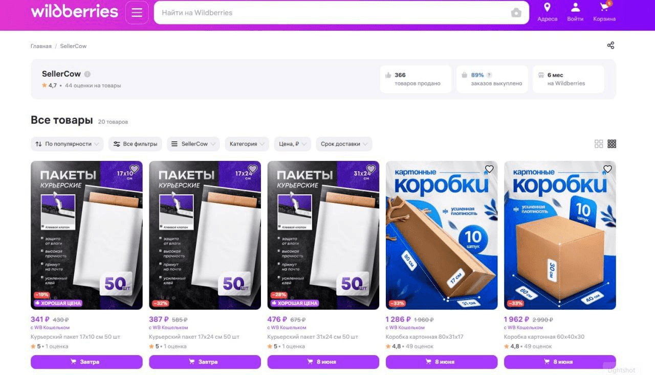 Мы продаём упаковку на Wildberries — коробки, пакеты, зип-локи и т.д. (https://www.wildberries.ru/seller/4338364#c304333162)